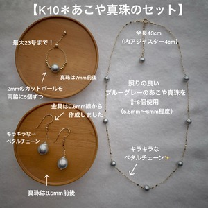 こちらはK10とあこや真珠のバロックを使用したセット。