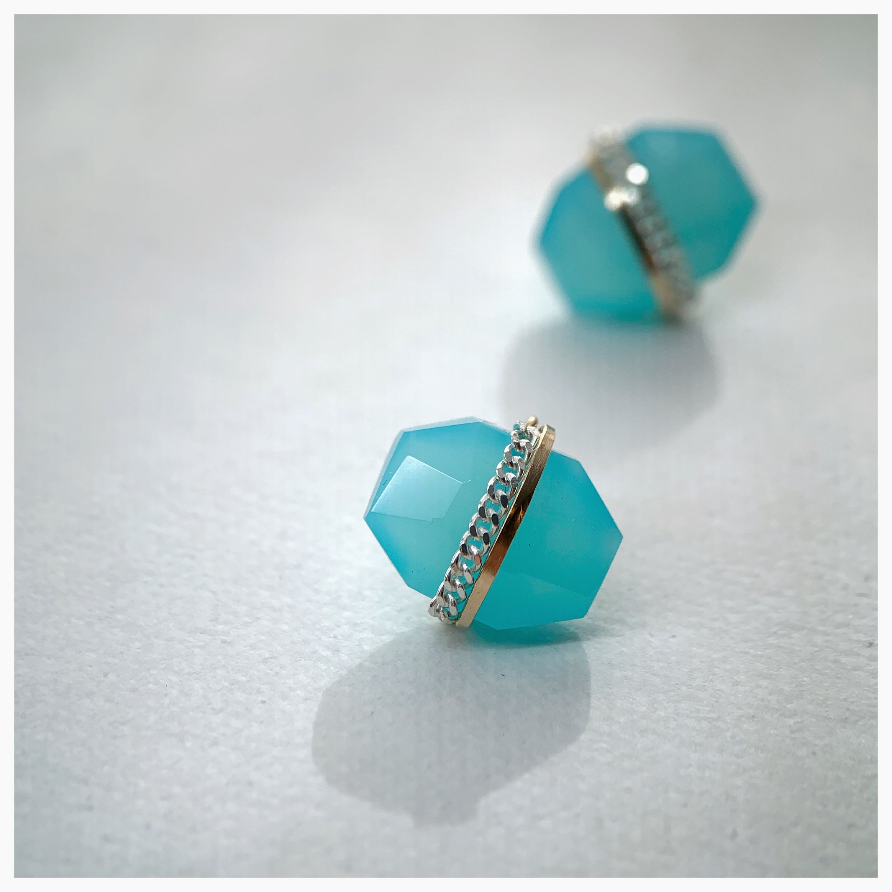 春夏に向けて、涼しげなシーブルーカルセドニーのピアス♪
